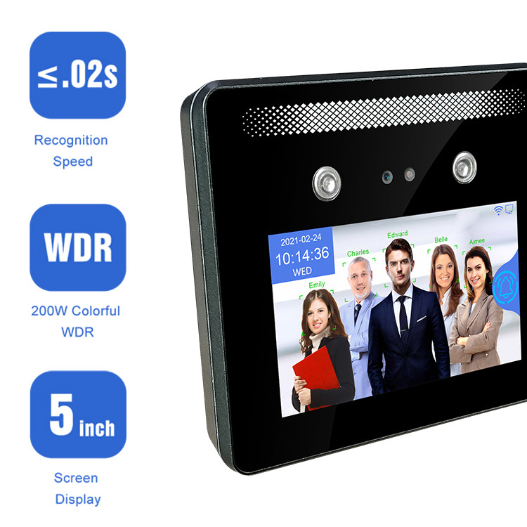5 ইঞ্চি মুখ স্বীকৃতি উপস্থিতি মেশিন বায়োমেট্রিক সময় রেকর্ডিং