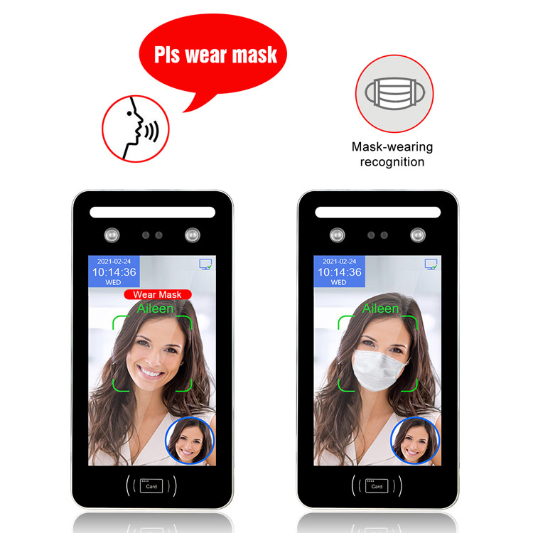 ফেস রিকগনিশন অ্যাটেন্ডেন্স মেশিন মুখোশ সনাক্তকরণ সনাক্তকরণ পরিহিত মুখোশ, আপনি যখন মুখোশ পরা করবেন না, তখন ডিভাইসটি বলবে যে Pls ফেস মাস্ক পরেন।মুখের স্বীকৃতি অ্যাক্সেস কন্ট্রোল সিস্টেম ইনফ্রারেড ক্যামেরা সহ লাইভ সনাক্তকরণ ফাংশনটিকে সমর্থন করতে পারে।