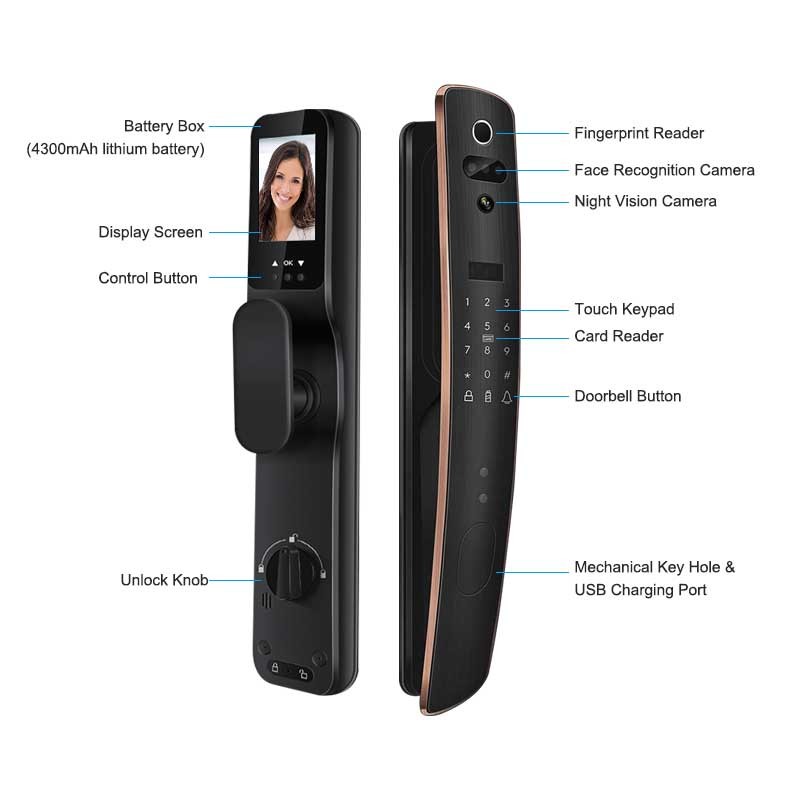 Tuya অ্যাপ 3D ফেস ডিজিটাল RFID ফিঙ্গারপ্রিন্ট ডোর লক স্মার্ট লক